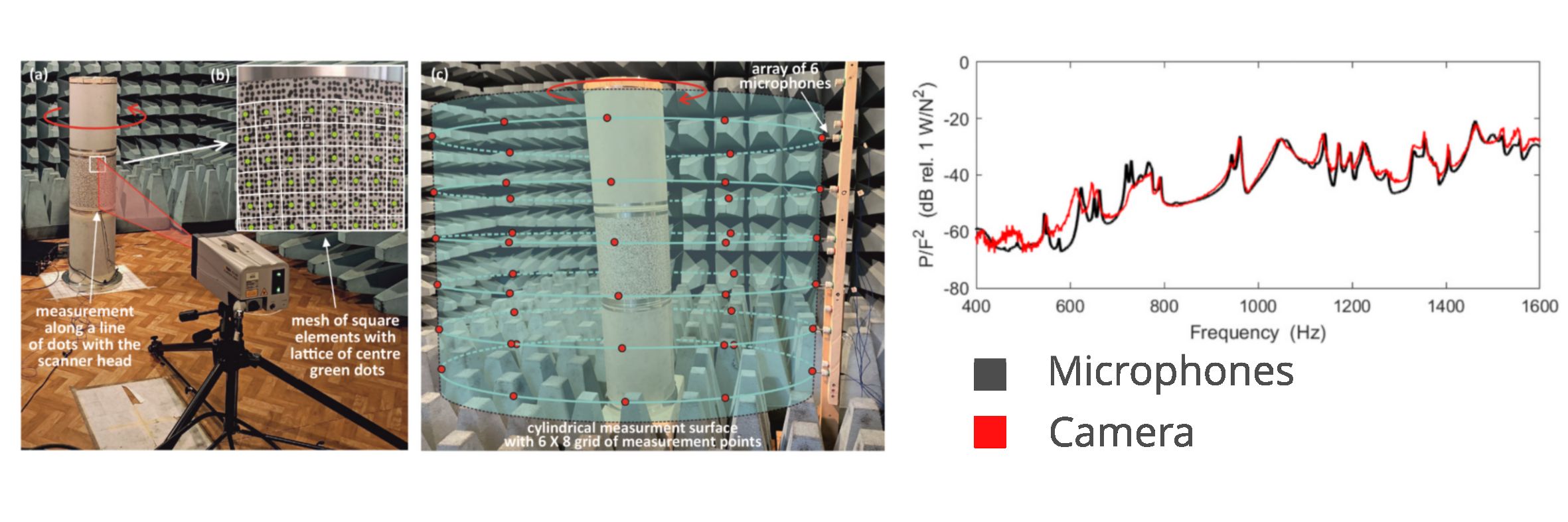 Narrow and third-octave spectra of total flexural vibration and sound power radiation from optical camera measurements
